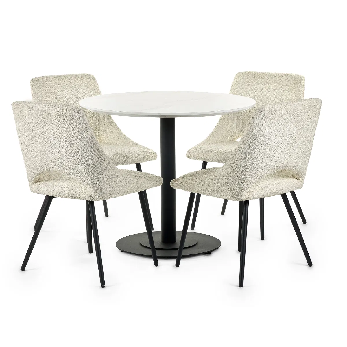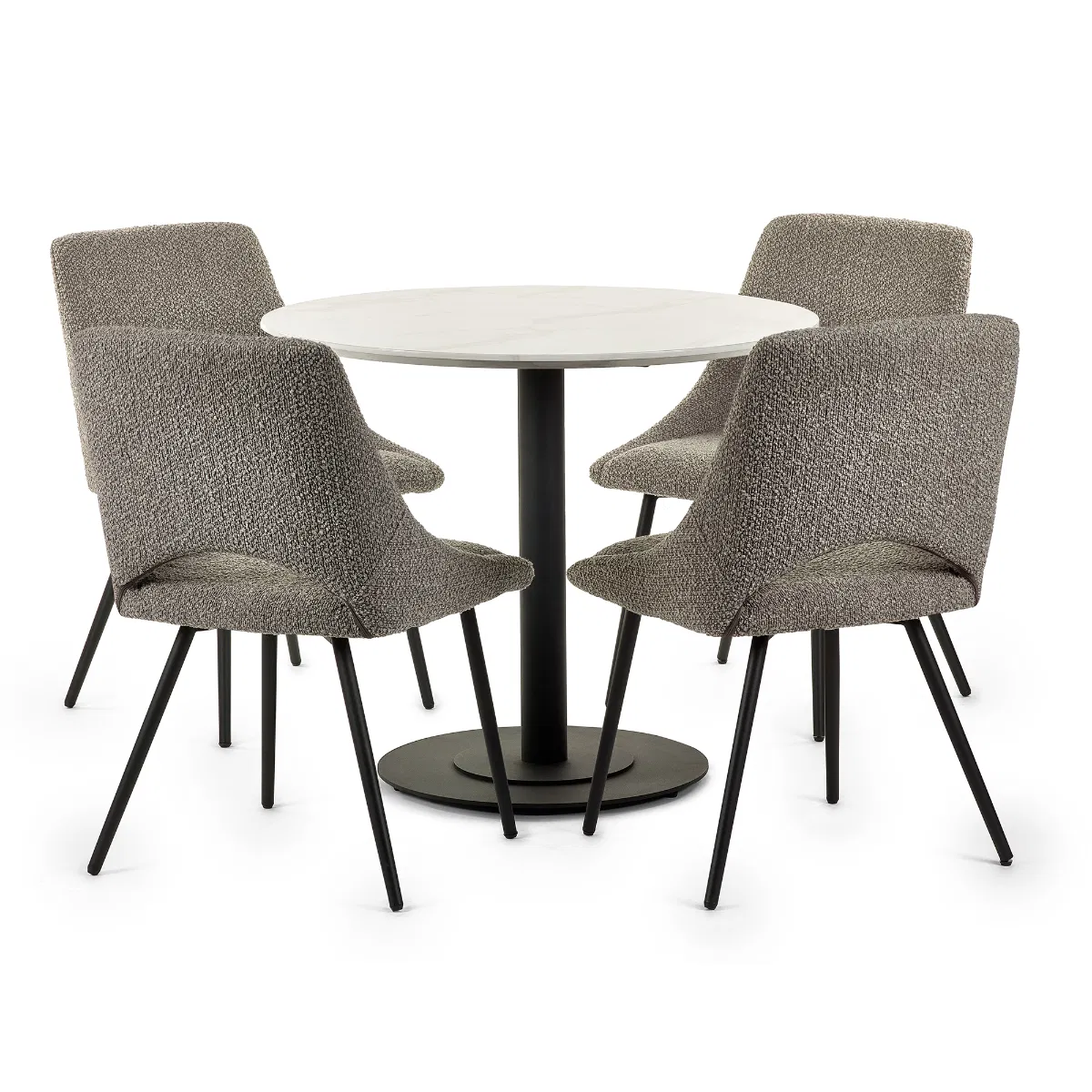 Elevate your dining space with the Luca round table, a piece that blends modern elegance with practical design. Featuring a striking marble-effect finish and a sleek black pedestal base, this table adds sophistication to any home. With its compact 80cm diameter, it’s perfectly sized for smaller dining areas, offering a stylish solution that makes the most of your space.